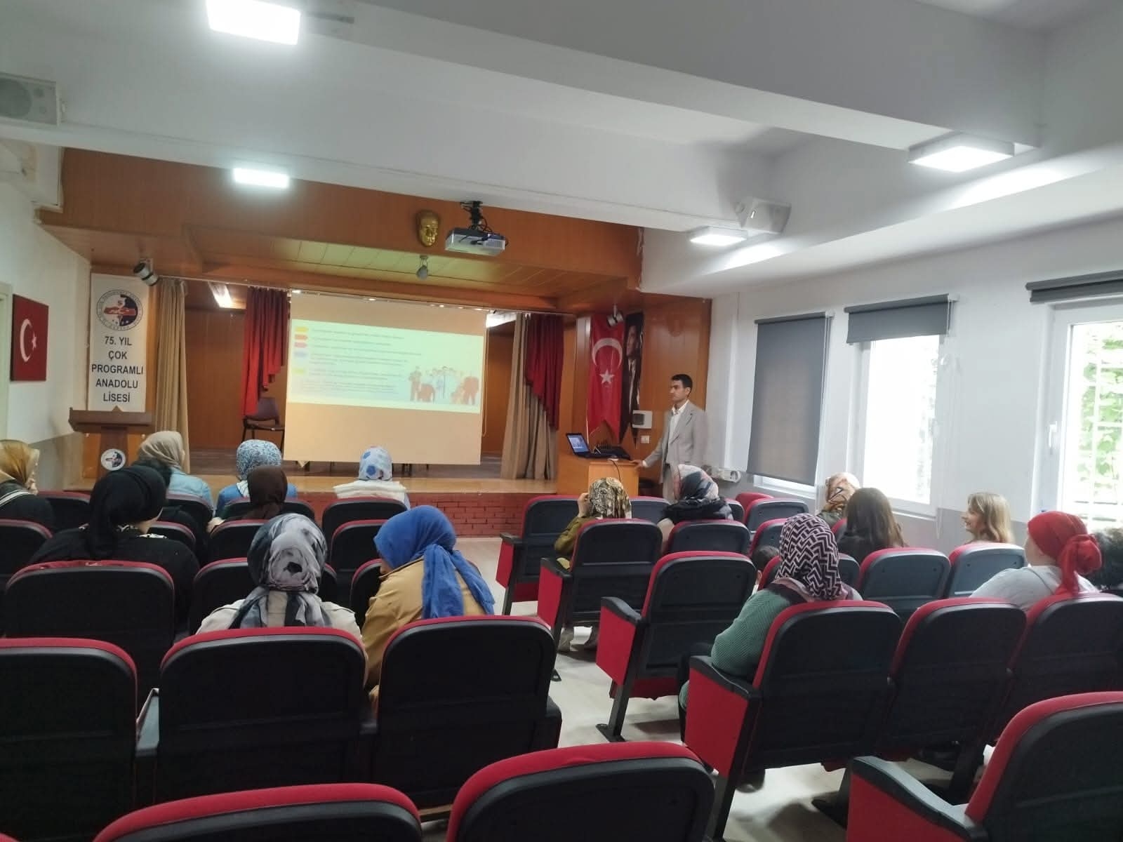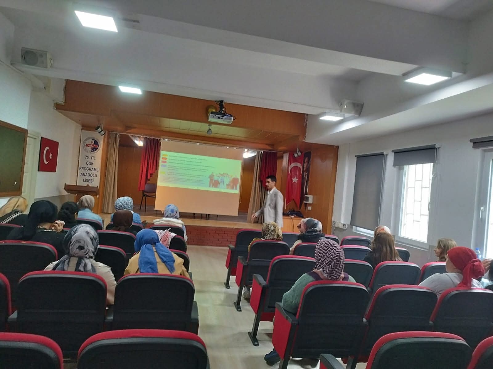 Okul ve kurumlarımızda Toplum Yararına Çalışma Programı kapsamında görev yapan yardımcı hizmetler personeline yönelik İş Sağlığı ve Güvenliği Eğitim Semineri düzenlendi. 75. Yıl Çok Programlı Anadolu Lisesi'nde gerçekleştirilen seminere ilçemizde görev yapan 17 personel katılım sağladı. Eğitim, İş Sağlığı ve Güvenliği Uzmanı Samet Göktaş tarafından verildi.